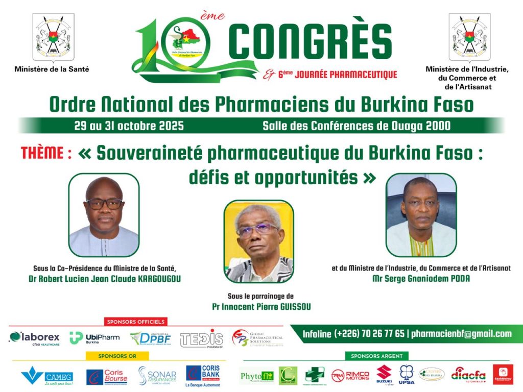 Durant ces trois jours, pharmaciens, acteurs du système de santé, partenaires techniques et institutionnels se réuniront autour du thème central :« Souveraineté pharmaceutique du Burkina Faso : défis et opportunités »